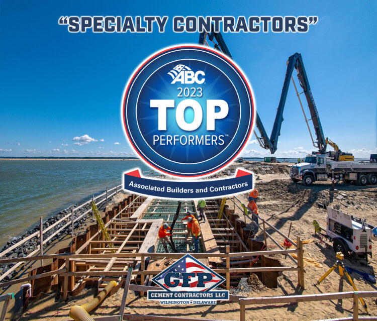 Wilmington, Delaware – March 22 — GFP Cement Contractors of Wilmington was ranked to ABC’s Top SPECIALTY Contractors – National Ranking: 46 – on Associated Builders and Contractors’ fifth annual Top Performers publication, which lists its contractor members that build the country’s most enduring, innovative, high-quality construction projects, ranked by work hours.